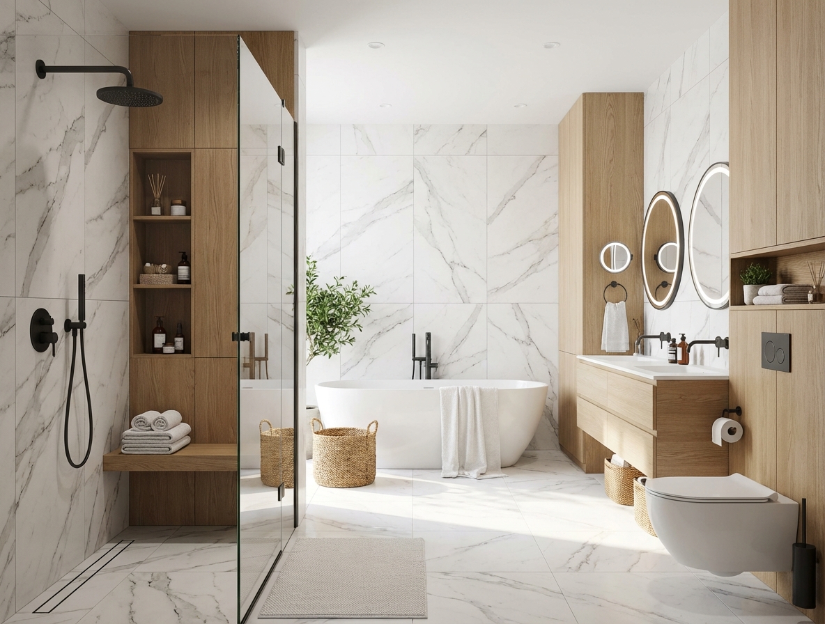 Дизайн ванной в стиле Сканди — фото интерьера от нейросети RoomGPT