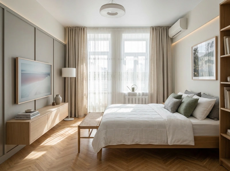 В этой подборке 626 примеров оформления спальни в стиле Сканди, созданных нейросетью RoomGPT. Каждое изображение сгенерировано на основе реального фото помещения.