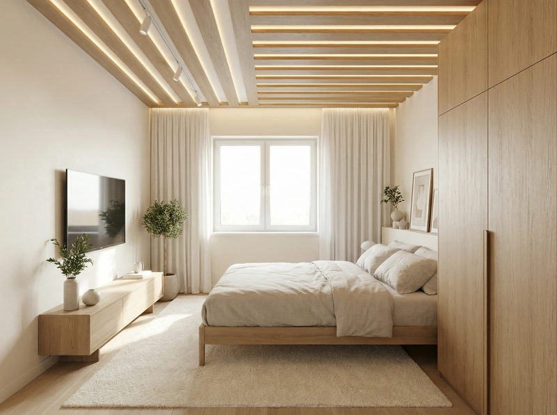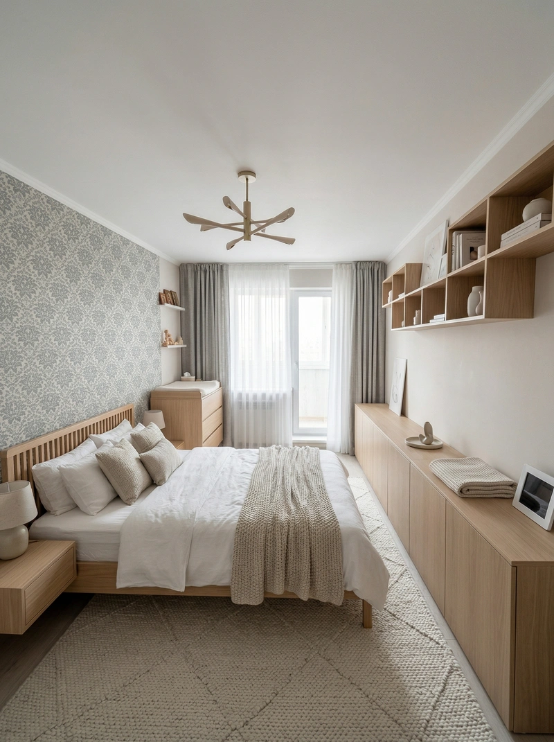 Дизайн спальни в стиле Сканди — фото интерьера от нейросети RoomGPT