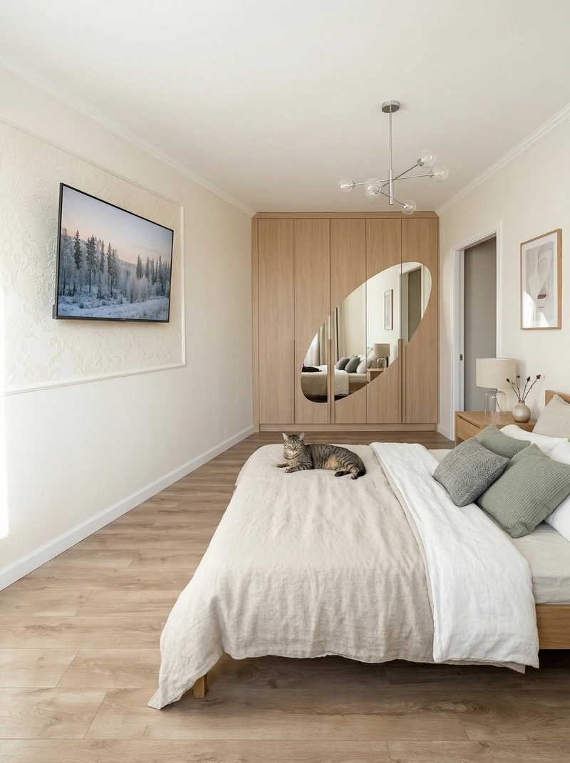 В этой подборке 616 примеров оформления спальни в стиле Сканди, созданных нейросетью RoomGPT. Каждое изображение сгенерировано на основе реального фото помещения.
