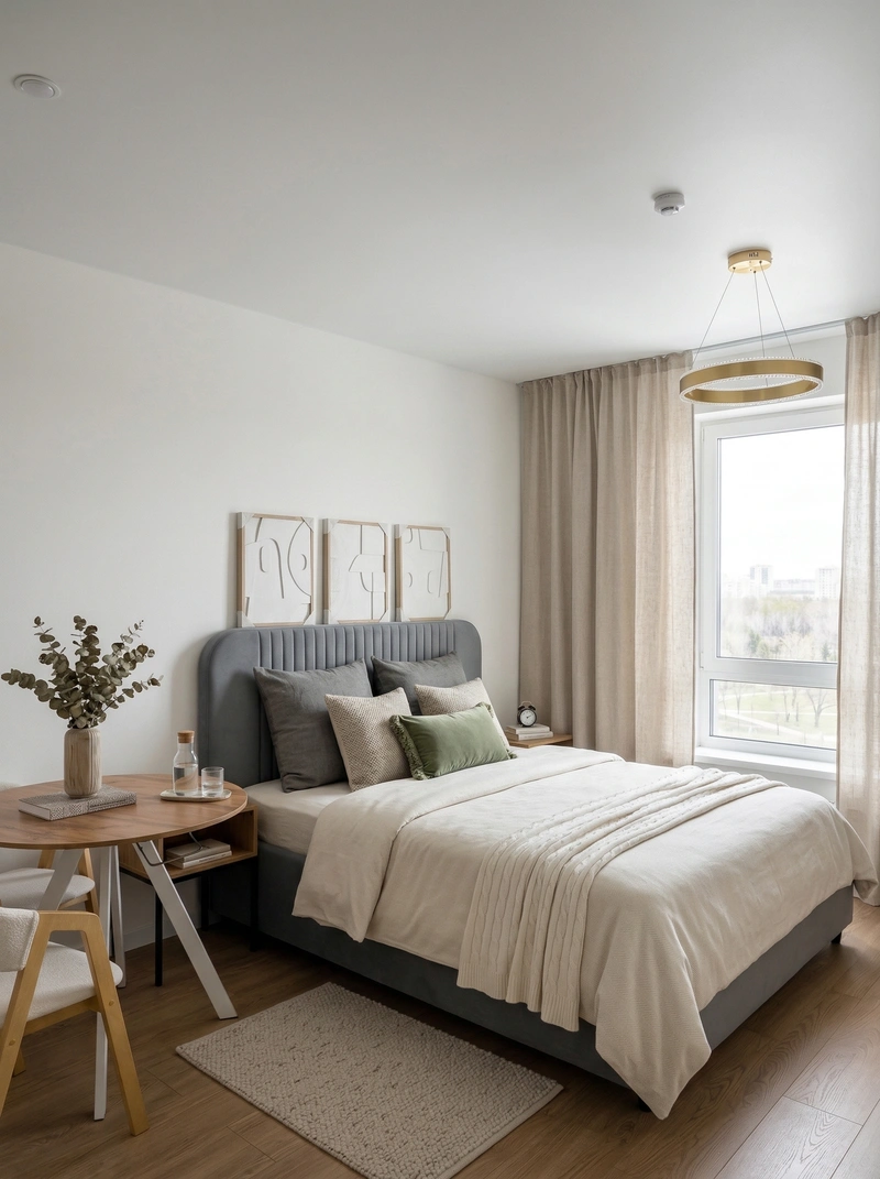 В этой подборке 618 примеров оформления спальни в стиле Сканди, созданных нейросетью RoomGPT. Каждое изображение сгенерировано на основе реального фото помещения.