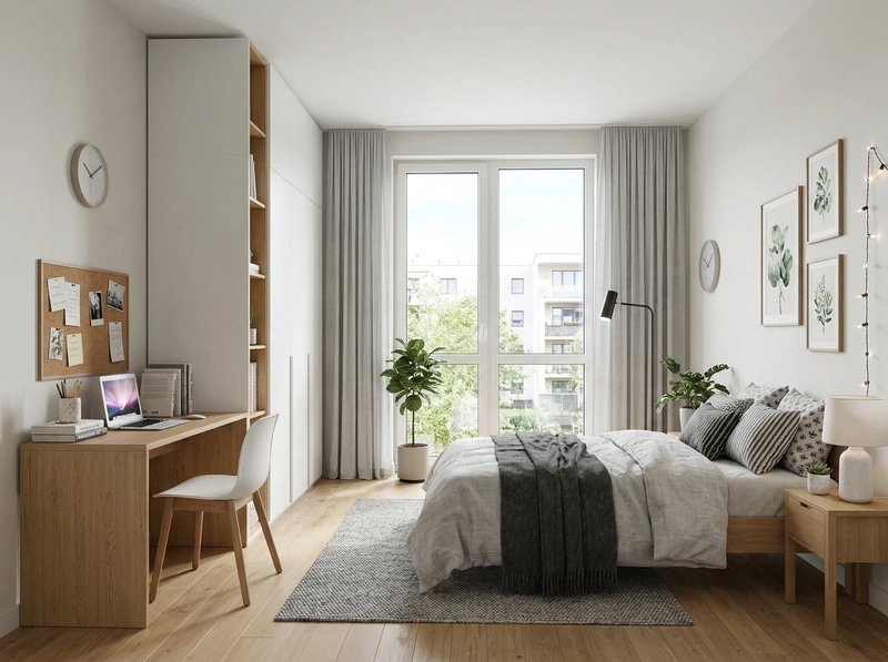 Светлый и воздушный скандинавский стиль. Белые стены, деревянные полы, функциональная мебель и яркие акценты создают лёгкое и практичное пространство.