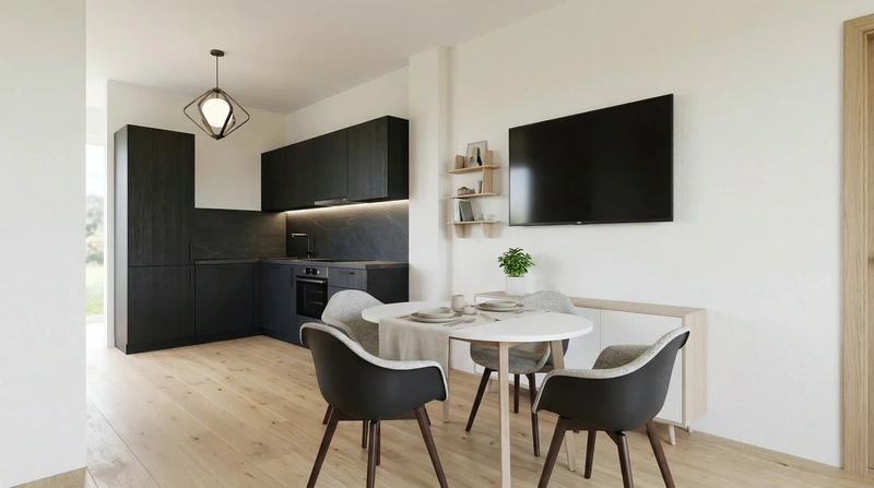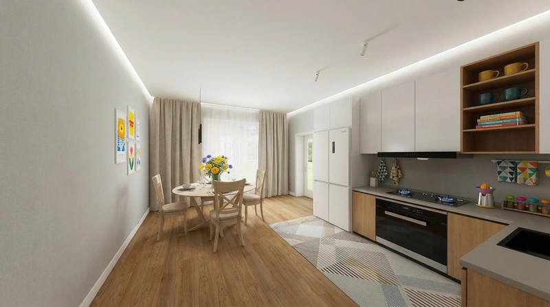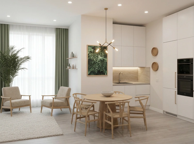 Светлый и воздушный скандинавский стиль. Белые стены, деревянные полы, функциональная мебель и яркие акценты создают лёгкое и практичное пространство.