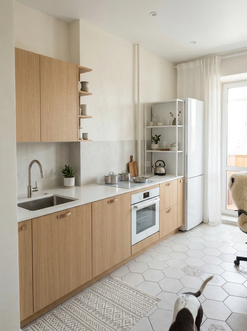 Дизайн кухни в стиле Сканди — фото интерьера от нейросети RoomGPT