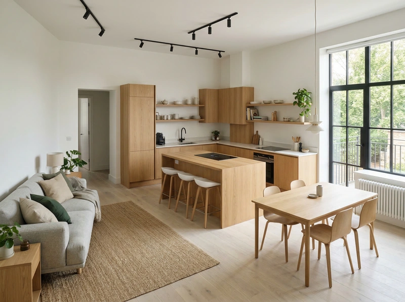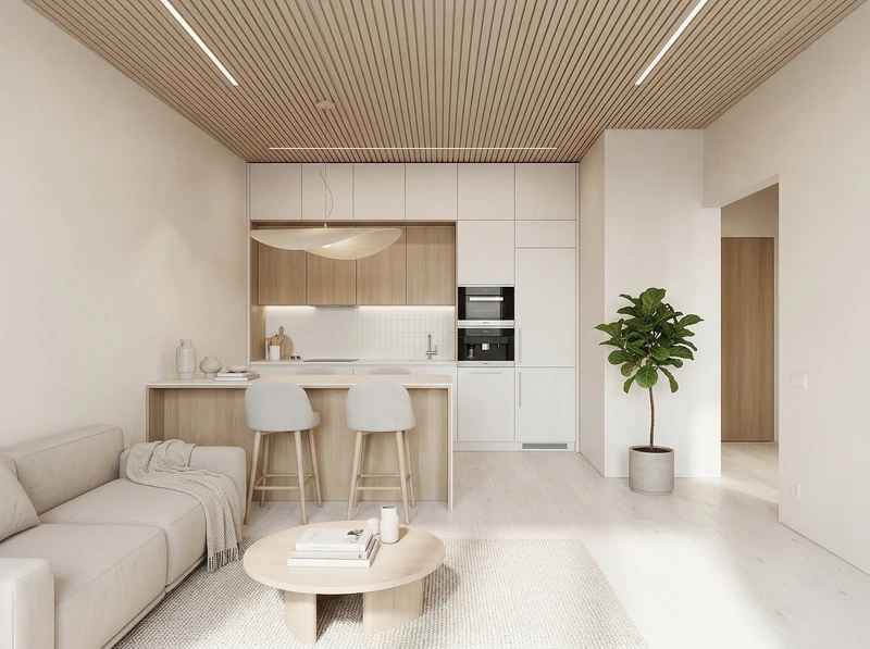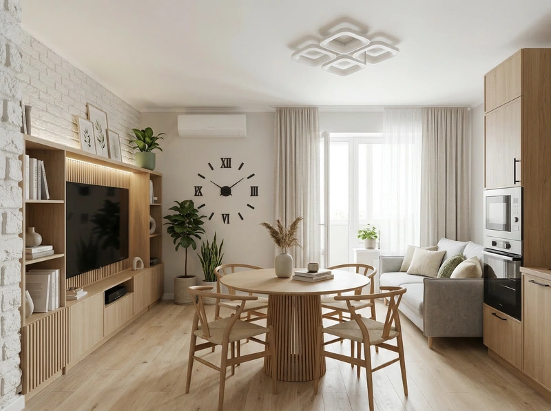 Светлый и воздушный скандинавский стиль. Белые стены, деревянные полы, функциональная мебель и яркие акценты создают лёгкое и практичное пространство.