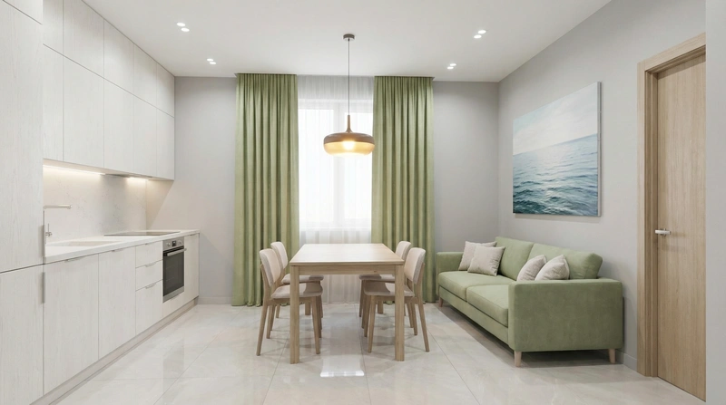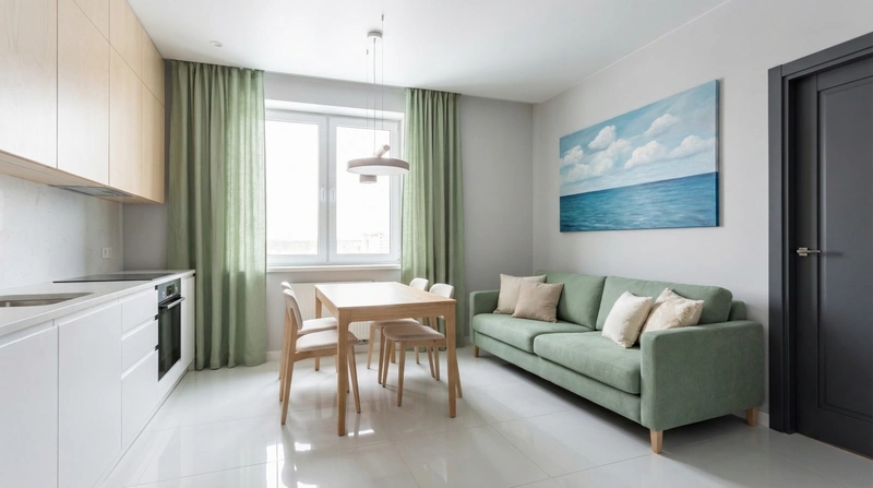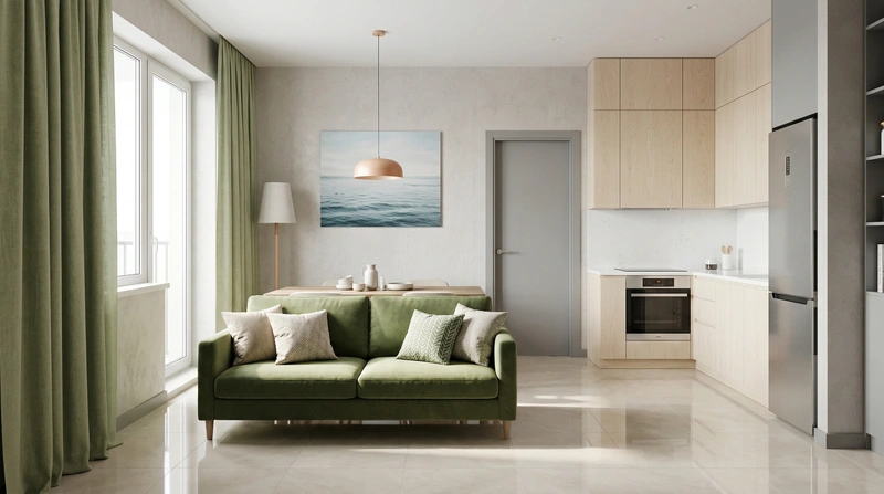 Светлый и воздушный скандинавский стиль. Белые стены, деревянные полы, функциональная мебель и яркие акценты создают лёгкое и практичное пространство.