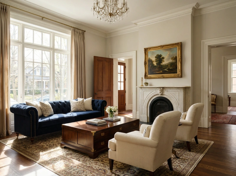 Утончённый стиль с симметрией, лепниной и благородными материалами. Классический интерьер сочетает роскошь и сдержанность, создавая атмосферу вневременной элегантности.