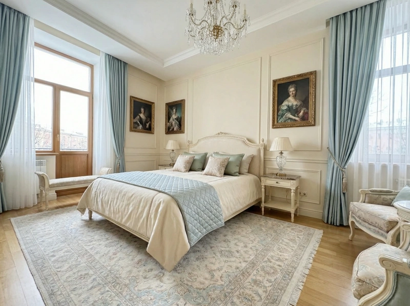 Утончённый стиль с симметрией, лепниной и благородными материалами. Классический интерьер сочетает роскошь и сдержанность, создавая атмосферу вневременной элегантности.