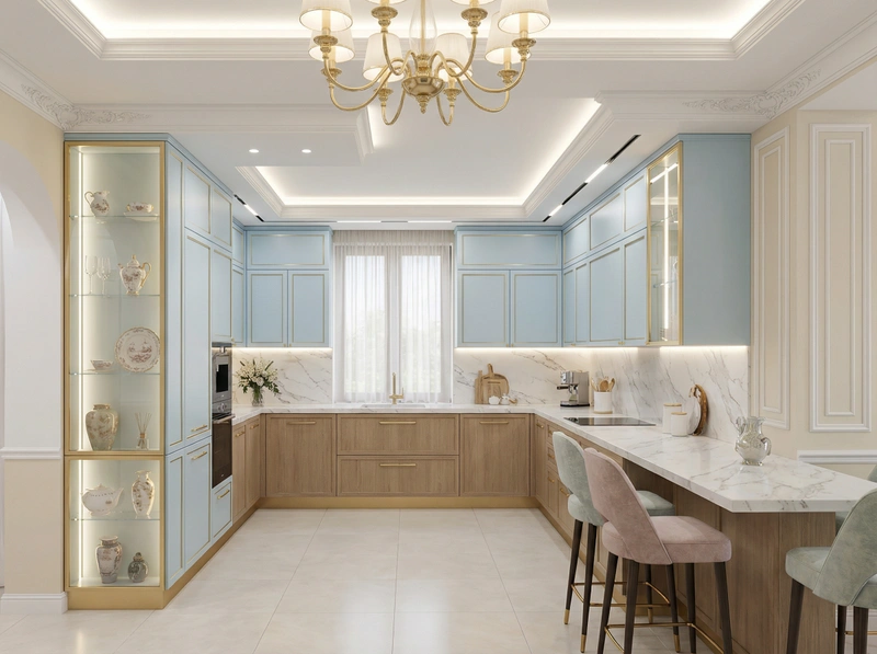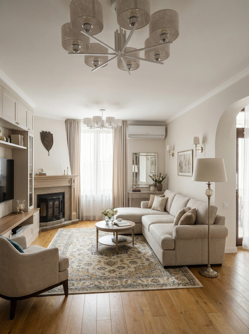Утончённый стиль с симметрией, лепниной и благородными материалами. Классический интерьер сочетает роскошь и сдержанность, создавая атмосферу вневременной элегантности.