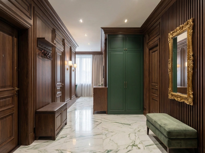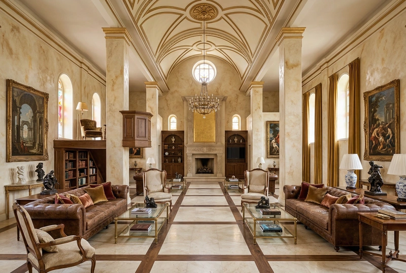 Утончённый стиль с симметрией, лепниной и благородными материалами. Классический интерьер сочетает роскошь и сдержанность, создавая атмосферу вневременной элегантности.