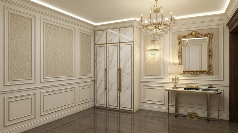 Утончённый стиль с симметрией, лепниной и благородными материалами. Классический интерьер сочетает роскошь и сдержанность, создавая атмосферу вневременной элегантности.