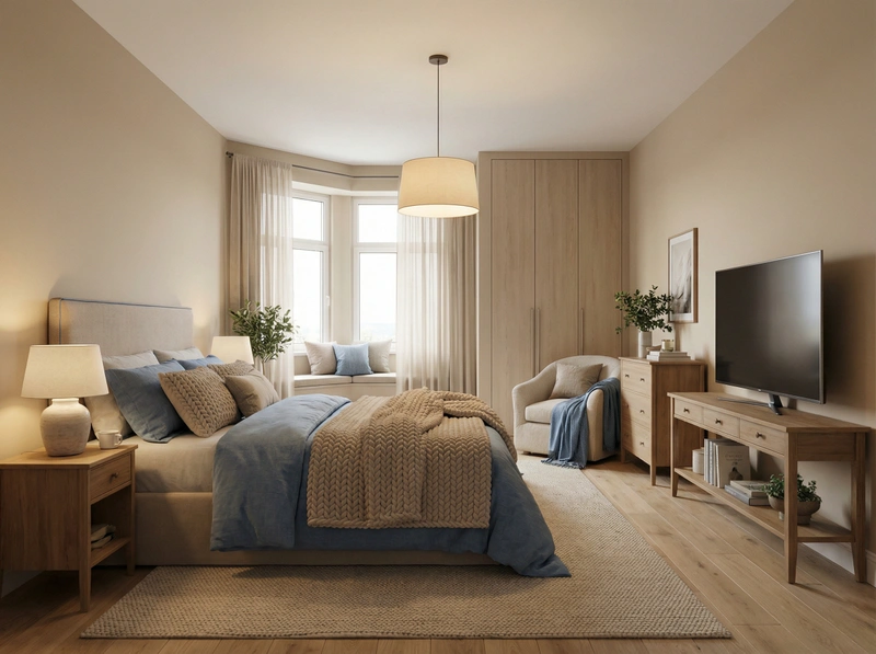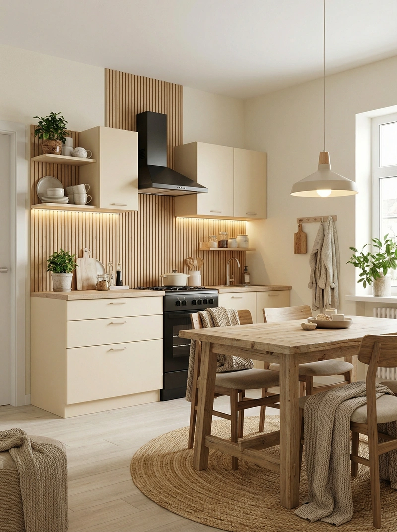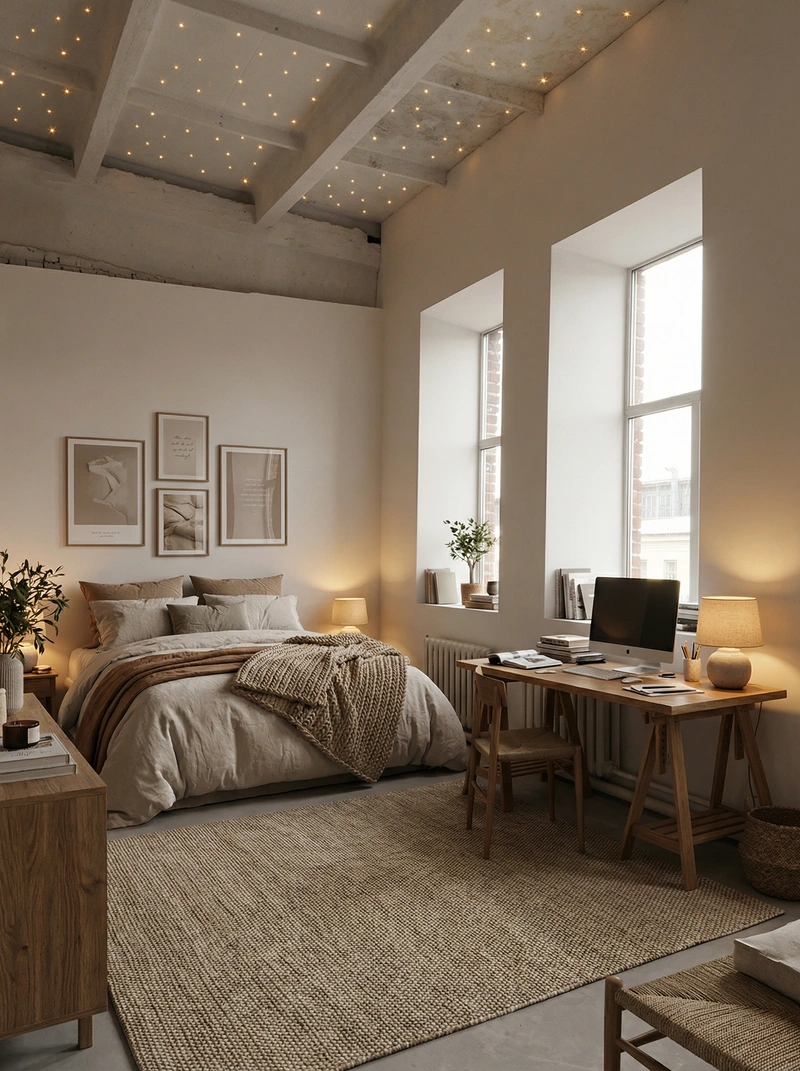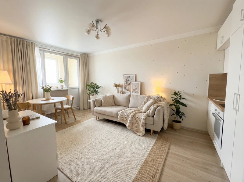 Уютный скандинавский стиль с акцентом на комфорт и тёплую атмосферу. Натуральные материалы, мягкие текстуры и приглушённые тона создают ощущение домашнего тепла и спокойствия.