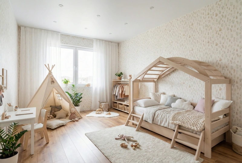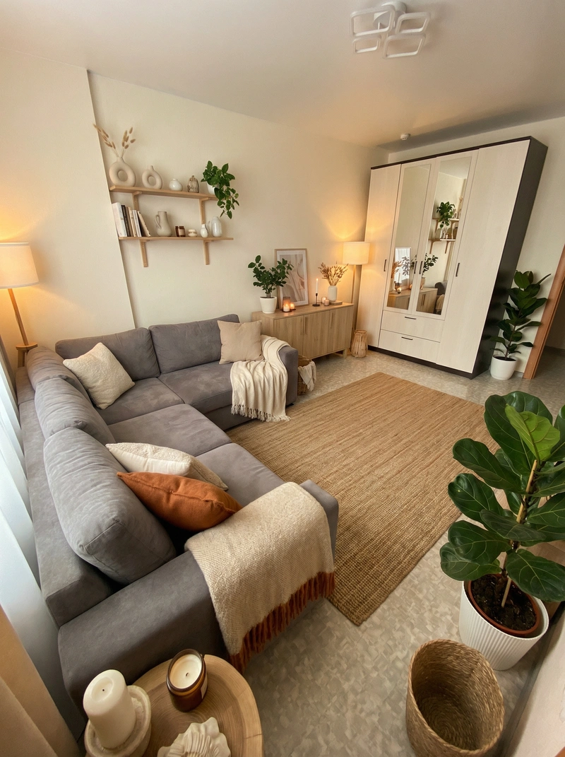 Уютный скандинавский стиль с акцентом на комфорт и тёплую атмосферу. Натуральные материалы, мягкие текстуры и приглушённые тона создают ощущение домашнего тепла и спокойствия.