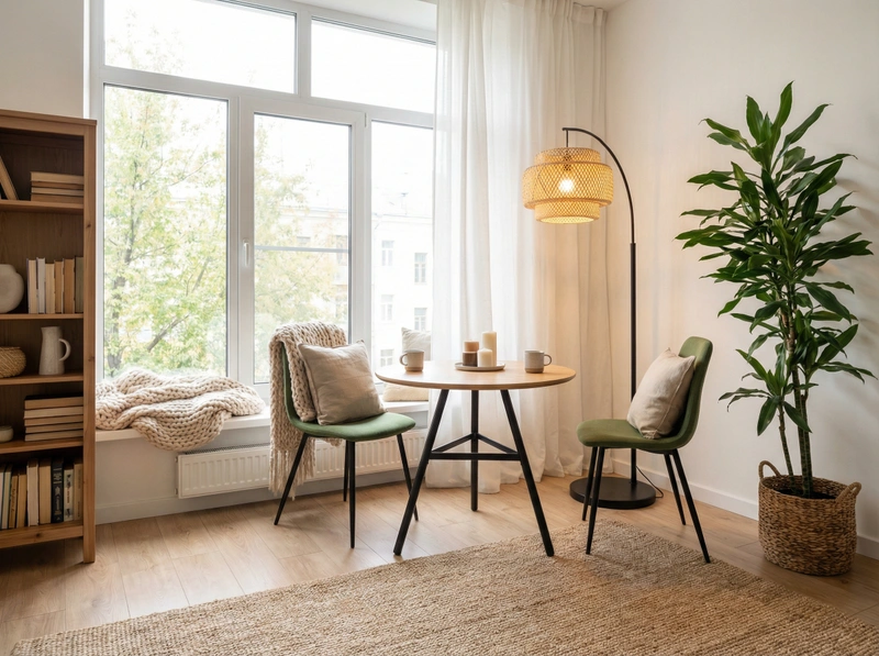 Уютный скандинавский стиль с акцентом на комфорт и тёплую атмосферу. Натуральные материалы, мягкие текстуры и приглушённые тона создают ощущение домашнего тепла и спокойствия.