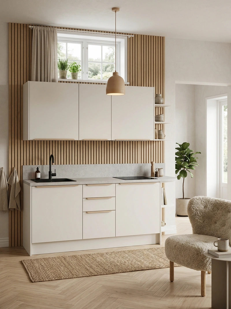 Уютный скандинавский стиль с акцентом на комфорт и тёплую атмосферу. Натуральные материалы, мягкие текстуры и приглушённые тона создают ощущение домашнего тепла и спокойствия.