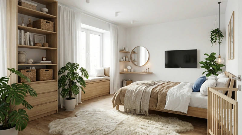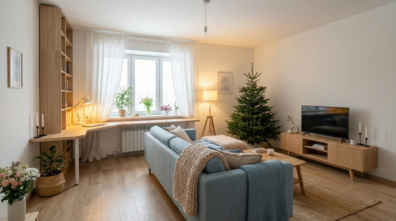 Уютный скандинавский стиль с акцентом на комфорт и тёплую атмосферу. Натуральные материалы, мягкие текстуры и приглушённые тона создают ощущение домашнего тепла и спокойствия.