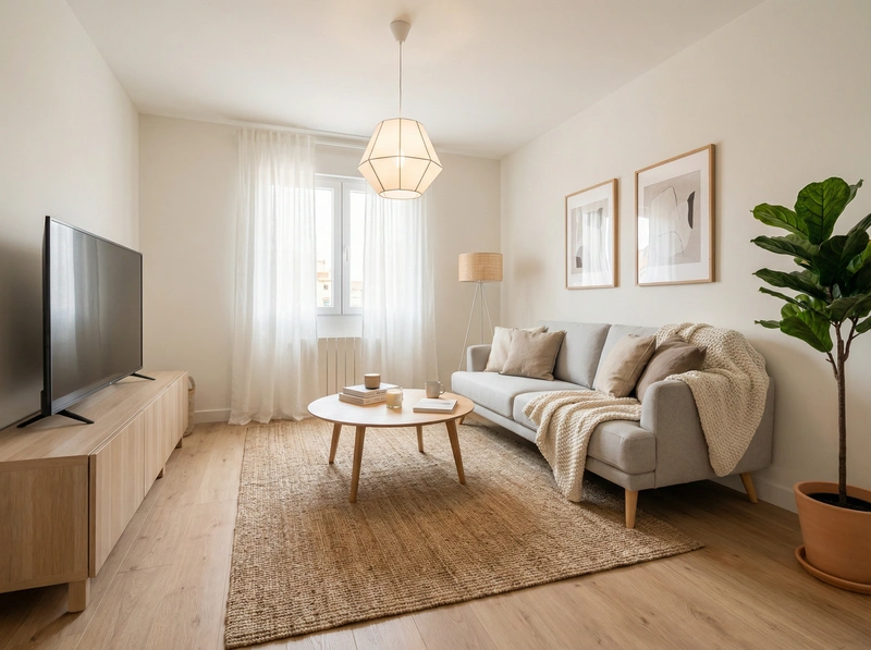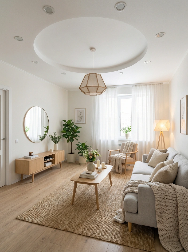 Уютный скандинавский стиль с акцентом на комфорт и тёплую атмосферу. Натуральные материалы, мягкие текстуры и приглушённые тона создают ощущение домашнего тепла и спокойствия.
