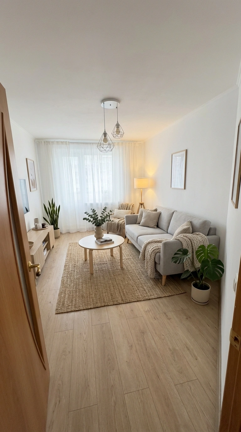 Уютный скандинавский стиль с акцентом на комфорт и тёплую атмосферу. Натуральные материалы, мягкие текстуры и приглушённые тона создают ощущение домашнего тепла и спокойствия.