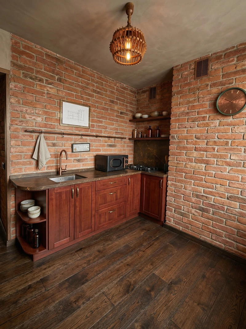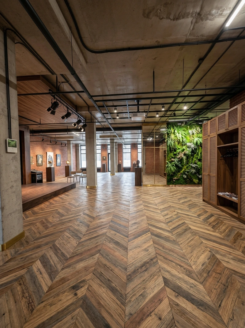 Индустриальный стиль с кирпичными стенами, открытыми коммуникациями и металлическими элементами. Лофт создаёт атмосферу творческого пространства с характером.