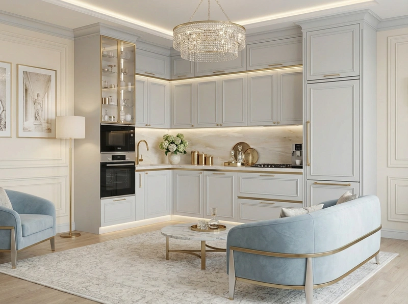 Современная интерпретация классики с изящными деталями, молдингами и благородной палитрой. Неоклассика привносит статус и утончённость в современное жильё.