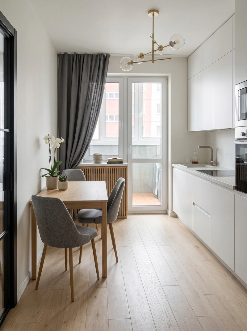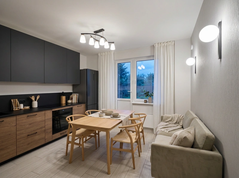 Светлый и воздушный скандинавский стиль. Белые стены, деревянные полы, функциональная мебель и яркие акценты создают лёгкое и практичное пространство.