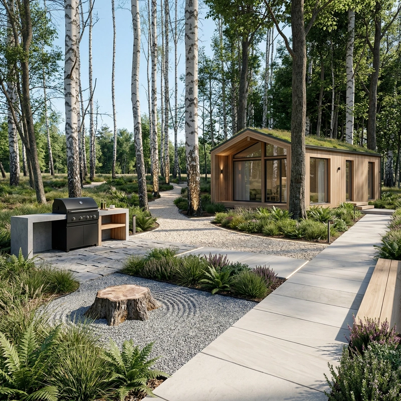 15+ соток — можно добавить водоём, спортивную площадку, фруктовый сад, зону для костра. Важно не перегрузить участок — оставьте открытые пространства для ощущения простора.